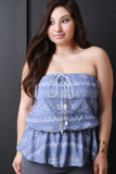 This alluring plus size top features an elastic neckline, bow-tie with tassel charms at front, floral print throughout, and cinched waistline. Partially lined. Accessories sold separately. Made in U.S.A. 100% Cotton.