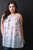 This plus size top features a lightweight woven fabrication, rounded pleated neckline, spaghetti straps, flare cut hemline, and a back keyhole with button closure at nape. Accessories sold separately. 100% Polyester.