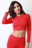 This long sleeve top features soft jersey knit, round neckline, long sleeves, and crop construction. Accessories sold separately. Made in U.S.A. 95% Cotton, 5% Lycra.
