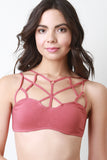 This bralette features a soft knit bandeau front, thin caged strap design with o-ring accents, and finished with hook & loop closure. Accessories sold separately. 60% Cotton, 32% Nylon, 8% Spandex.