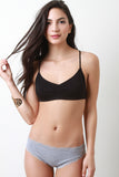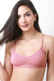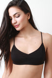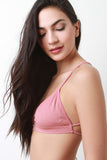 This bralette top features a stretchy texture knit fabrication, spaghetti shoulder straps, and a caged constructed racer back. Accessories sold separately. 92% Nylon, 8% Spandex.