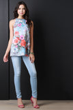 This sleeveless top features a round neckline, keyhole back with double button closure at nape, shift cut fit, and floral print design. Accessories sold separately. Made in U.S.A. 95% Polyester, 5% Spandex.