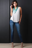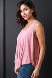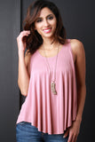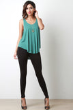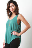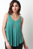 This sleeveless top features a scoop neckline, flare trapeze cut fit, and a high low hemline. Accessories sold separately. 64% Modal, 36% Polyester.