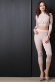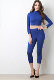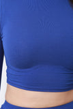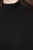This crop top features a mock neck, three quarter length sleeves, knit fabrication. Accessories sold separately. Made in U.S.A. 96% Rayon, 4% Spandex.