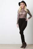 This bodysuit features a mosaic pattern print on semi-sheer mesh fabrication, mock neckline, long sleeves, brief bottom and double snap button closure at crotch. Accessories sold separately. Made in U.S.A. 100% Polyester.
