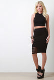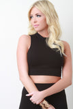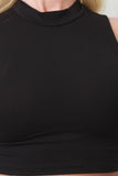 This casual top features a jersey knit fabrication, mock neckline with single button hook up at nape, back keyhole detail, sleeveless construction, and cropped hemline. Accessories sold separately. Made in U.S.A. 95% Cotton, 5% Spandex.