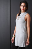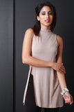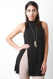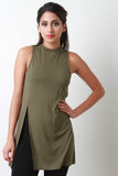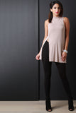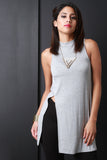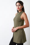 This sleeveless top features a mock neckline, relaxed fit, one princess seam, side slit, and a soft knit fabrication. Accessories sold separately. 60% Polyester, 35% Rayon, 5% Spandex.