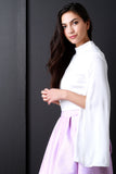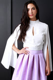 This sophisticated top features a mock neckline with double button hook closure at nape, front keyhole, and long sleeves with a dramatic slit design. Finished with a self-tie back bow detail and cropped hemline. Accessories sold separately. Shell: 100% Polyester. Lining: 100% Polyester.