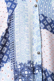 This top features a light weight woven fabrication, v neck line 3 button front closure. cocoon silhouette, raglan style sleeves and a over-sized fit. Accessories sold separately. Made in U.S.A. 100% Polyester.
