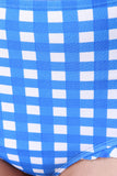 This tankini set features gingham pattern, padded bust, criss-cross straps with self-tie string, and ruffle accent bottoms. Finished with lining. Accessories sold separately. Shell: 80% Polyester, 20% Polyurethane. Lining: 100% Polyester.