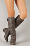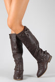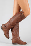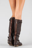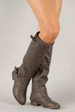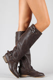 Breckelle Double Buckle Contrast Zipper Riding Knee High Boot