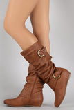 Wild Diva Lounge Buckle Slouchy Wedge Boots