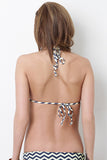 Feel the heat coming on; prepare yourself with the Lime Insignia Grade Bikini Top. This reversible bikini top feature, soft stretch swim material, classic bikini cut, self tie halter straps, chevron print throughout, thick chevron print on one side, inner side has multi-sized chevron print, self tie back straps, finished with hidden stitching detailing. Accessories sold separately. 91% Nylon, 9% Spandex. Lining: 95% Polyester, 5% Spandex.