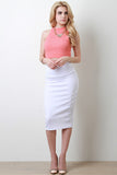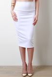 Climb your way to the top of the fashion ladder with the Rising Profile Skirt. Featuring a wide fold waistline and solid fabrication throughout. Accessories sold separately. Made in U.S.A. 95% Cotton, 5% Spandex.