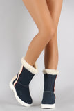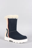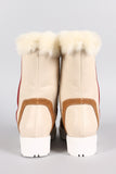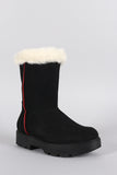 Faux Fur Round Toe Lug Sole Mid Calf Boots