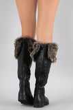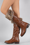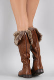 Bamboo Faux Fur Cuff Round Toe Riding Knee High Boots