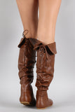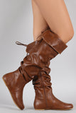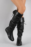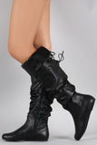 Bamboo Vegan Leather Slouchy Cutie Lace Up Flat Boots