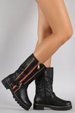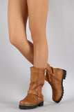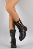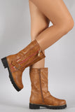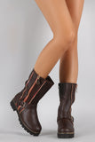 Buckled Zipper Trim Riding Mid Calf Boots
