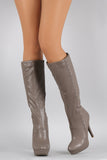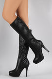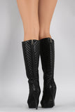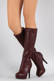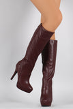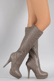 Bamboo Quilted Almond Toe Heeled Platform Boots