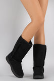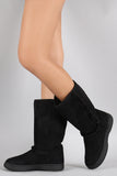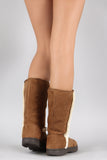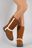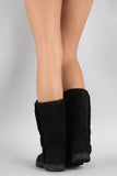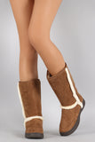 Bamboo Suede Fur Trim Round Toe Mid Calf Flat Boots