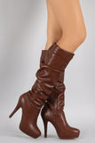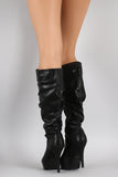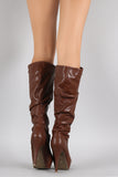 Bamboo Slouchy Platform Heeled Knee High Boots
