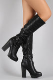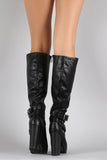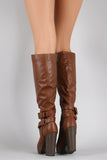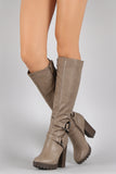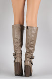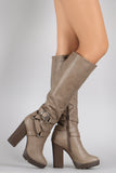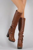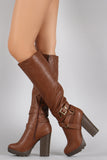 These boots feature an almond shape toe with a sequence of a single buckle and a chunky, stacked heel. Finished with an inner side zipper, lug sole, and soft interior lining.