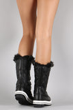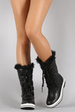 Quilted Faux Fur Cuff Lace Up Mid Calf Boots