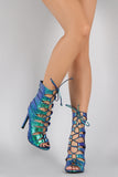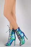 Liliana Hologram Snakeskin Lace Up Peep Toe Heel