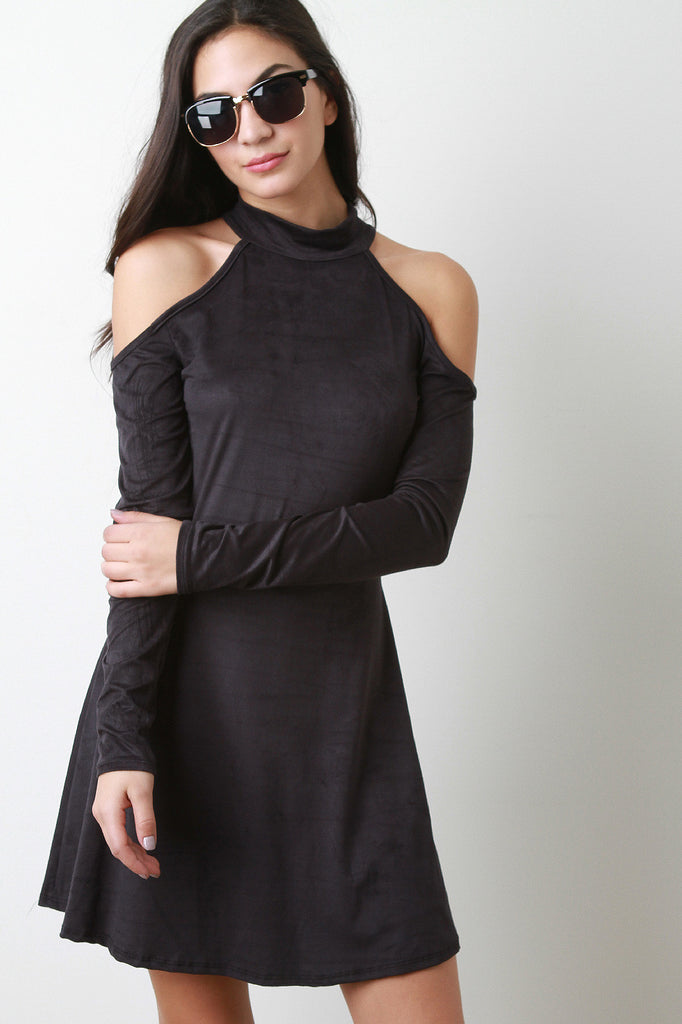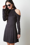 Faux Suede Cold Shoulder Skater Dress