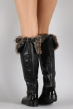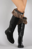 Bamboo Faux Fur Cuff Round Toe Rain Boots