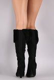 Bamboo Faux Fur Cuff Suede Heeled Knee High Boots
