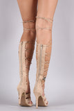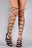 Wild Diva Lounge Suede Strappy Lace Up Gladiator Heel