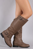 Buckle Ruched Riding Knee High Boot
