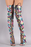 Rainbow Python Lace-Up Stiletto Over-The-Knee Boots