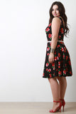 Floral Scoop Neck Sleeveless Belted Fit And Flare Dress