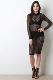 Mock Neck Semi-Sheer Mesh Bodycon Dress