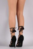 Suede Strappy Tassel Lace-Up Stiletto Heel
