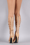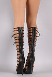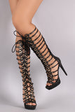 This stunning  lace-up  front design. Finished with tribute platform, wrapped stiletto heel, lightly padded insole, and convenient back-zip closure.