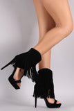 Privileged Suede Long Fringe Cuff Stiletto Platform Heel
