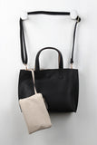This mini tote bag features pebbled vegan leather, reversible design, and magnetic closure. Bag is finished with removable zipper pouch, top handle (4.5" drop), and removable adjustable shoulder strap (13.5" drop).