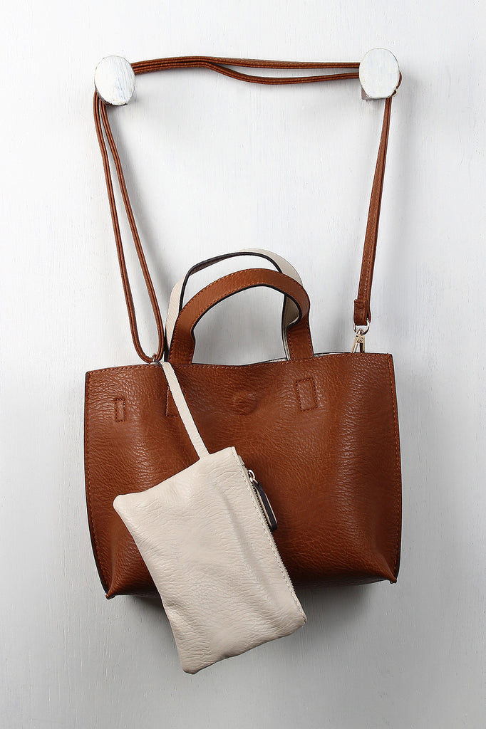 Reversible Pebbled Vegan Leather Mini Tote Bag