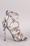 Shoe Republic LA Python Strappy Hardware Embellished Heel