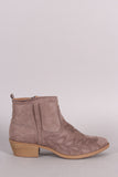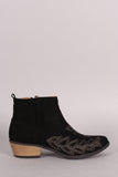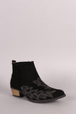 Qupid Suede Embroidered Western Ankle Boots