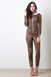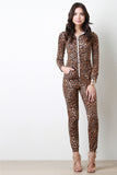 Leopard Hooded Zip-Up Long Sleeves Jumpsuit
