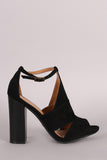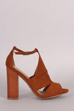 This mule silhouette, featuring side slits, a rear back, and an adjustable ankle strap. Finished on a faux wooden heel.