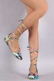 Liliana Floral Lace Up Pointy Toe Flat
