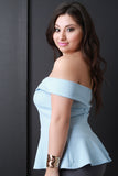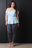 This plus size top features textured knit, off the shoulder neckline, peplum hem, and finished with rhinestone necklace. Accessories sold separately. 96% Polyester, 4% Spandex.