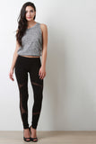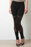 These jersey knit leggings features an elasticized waist, stretchy sculpture fit, and semi-sheer mesh panels along sides. Accessories sold separately. Made in U.S.A. 95% Cotton, 5% Spandex.