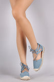 Bamboo Denim Ankle Cuff Lace Up Espadrille Flat