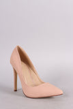 This pointy toe silhouette, scoop vamp, and wrapped stiletto heel. Finished with lightly padded insole and easy slide style.